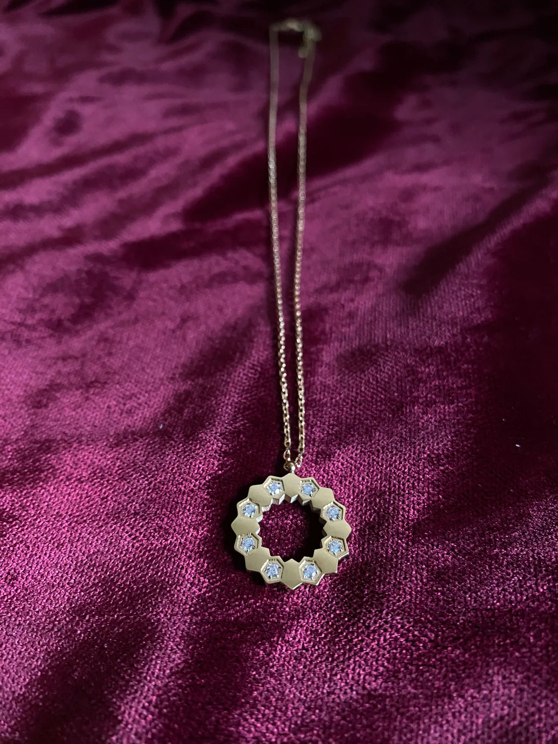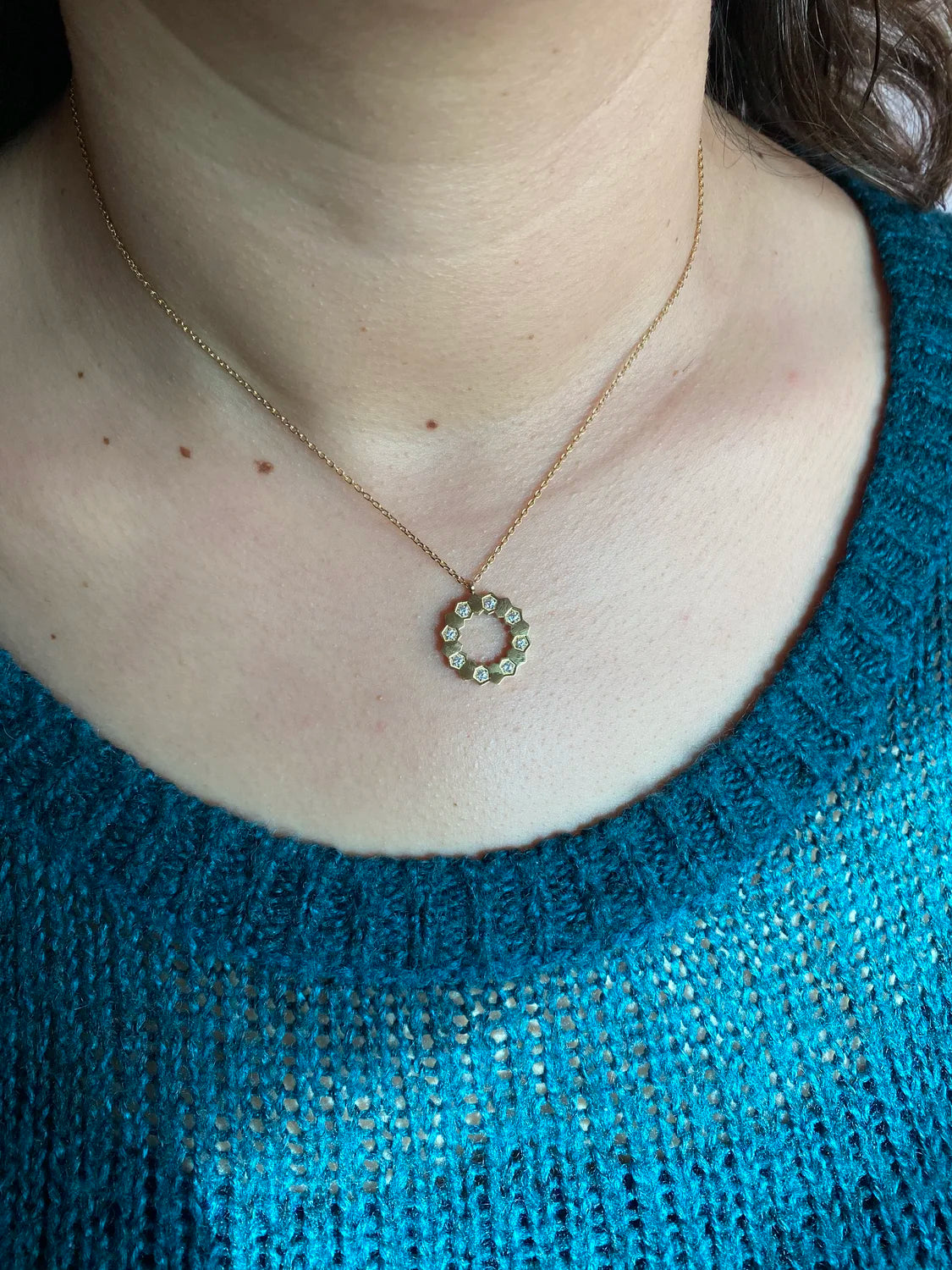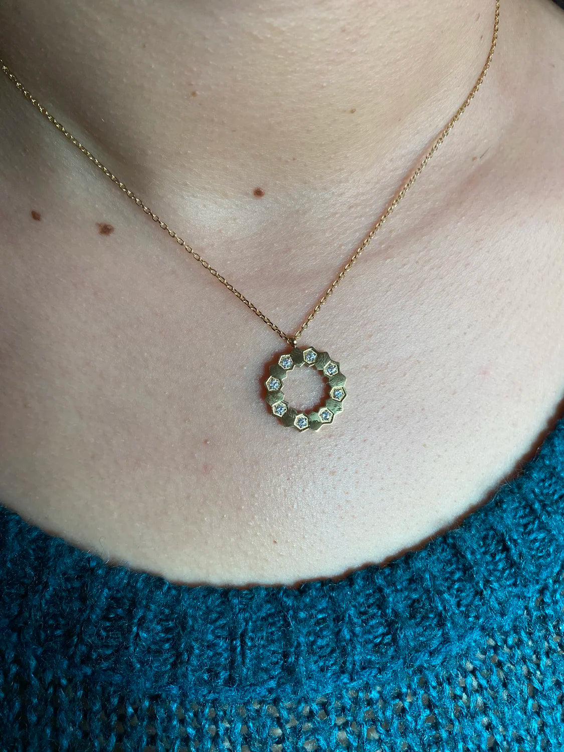 - Design : Pendentif cercle orné de pierres scintillantes